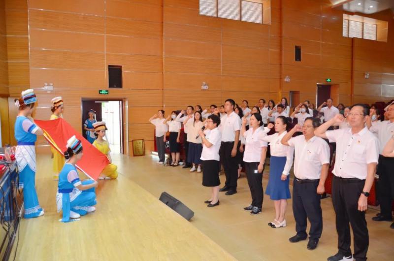 会上,新入党的党员宣誓,全体党员重温入党誓词,为老党员石国才同志颁发“光荣在党五十年”纪念章,为七月份入党同志代表过“政治生日”;表彰在教育教学和管理服务工作中涌现出来的先进基层党组织、优秀共产党员和优秀党务工作者;表彰学校“党的二十大知识竞赛”获奖师生;举行马克思主义学院成立授牌授印仪式。