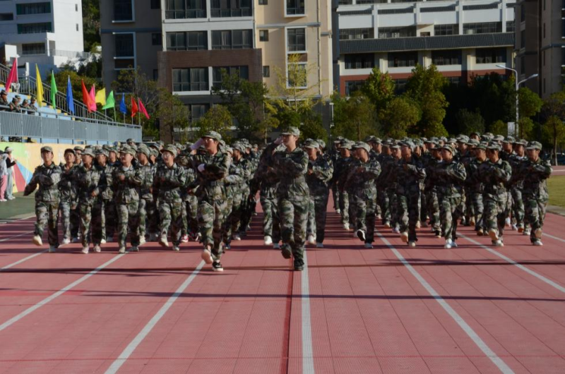 43个新生班级形成的21个军训连队依次从主席台前经过接受检阅,军体拳、应急操、刺杀操、战术演练、队列表演充分展示了此次军训所取得的优异成绩。