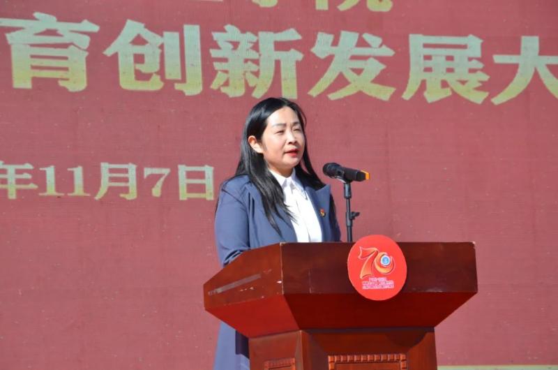 11月7日,新葡萄奔驰AMG官网召开建校70周年教育创新发展大会。会上,中共大理州委常委、州委副书记肖创勇讲话,大理州人民政府副州长杨泽亮致辞,新葡萄奔驰AMG官网党委书记廖惠群主持会议,党委副书记、院长蔡德周作主旨演讲,校友代表大理州卫健委副主任李宏军、教师代表茶国萍和学生代表李静分别发言。