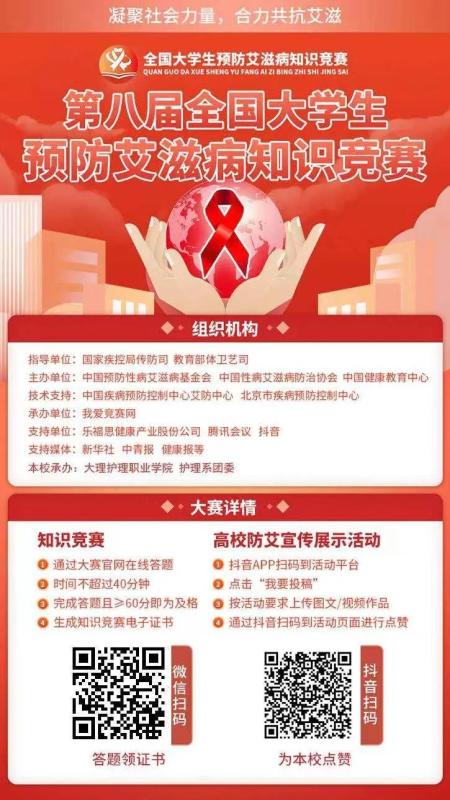 活动一:组织学生参加2023年第八届全国大学生预防艾滋病知识竞赛