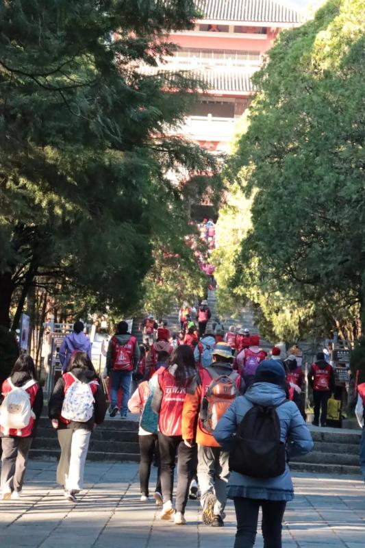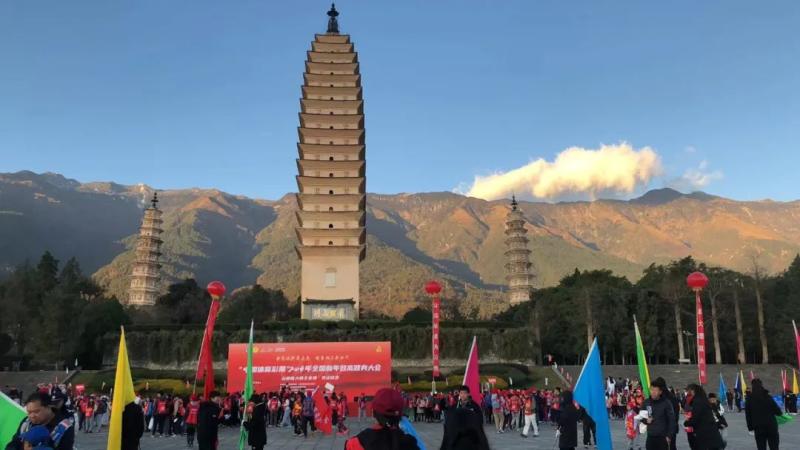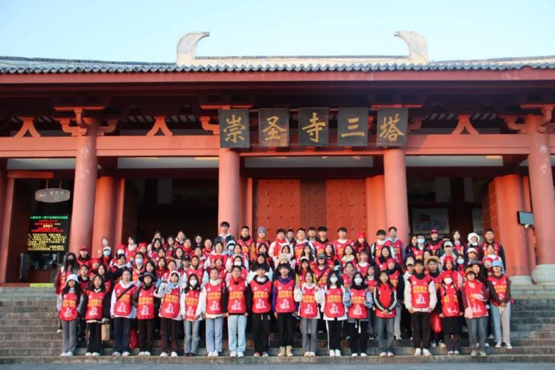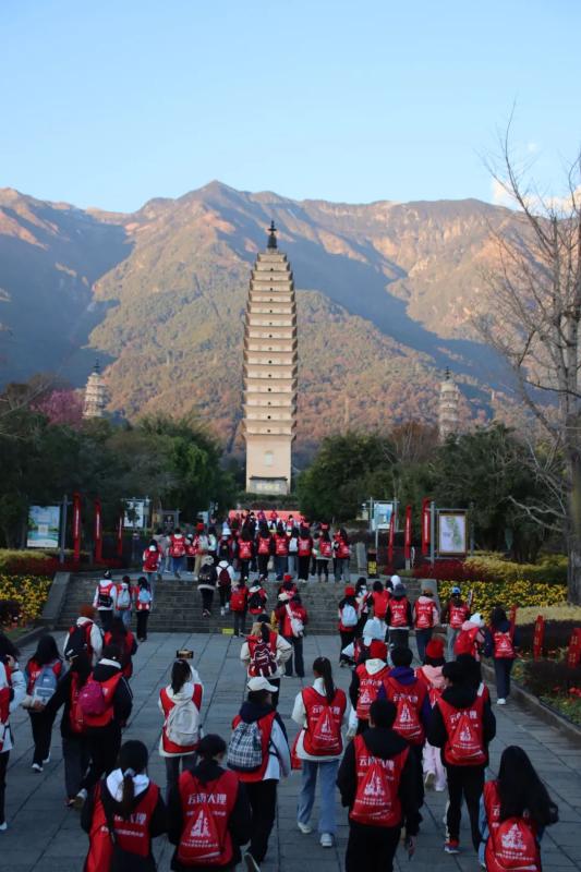 2024年1月1日,新葡萄团委组织100名师生前往大理崇圣寺三塔参加全国新年登高健身大会云南省大理主会场·苍山徒步活动。