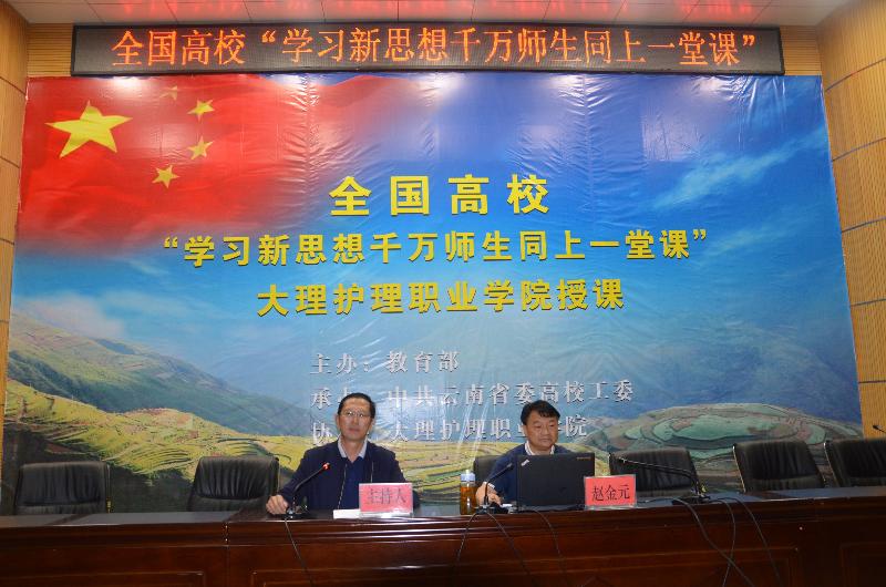 学院将以“千万师生同上一堂课”活动为契机,采取多种形式,把习近平新时代中国特色主义思想学习教育贯穿学生思想政治理论课全过程,切实用新思想武装师生头脑,坚定培养社会主义合格建设者和可靠接班人,不辱使命,奋发进取,努力实现把学院办成高水平有特色的高等职业学院。