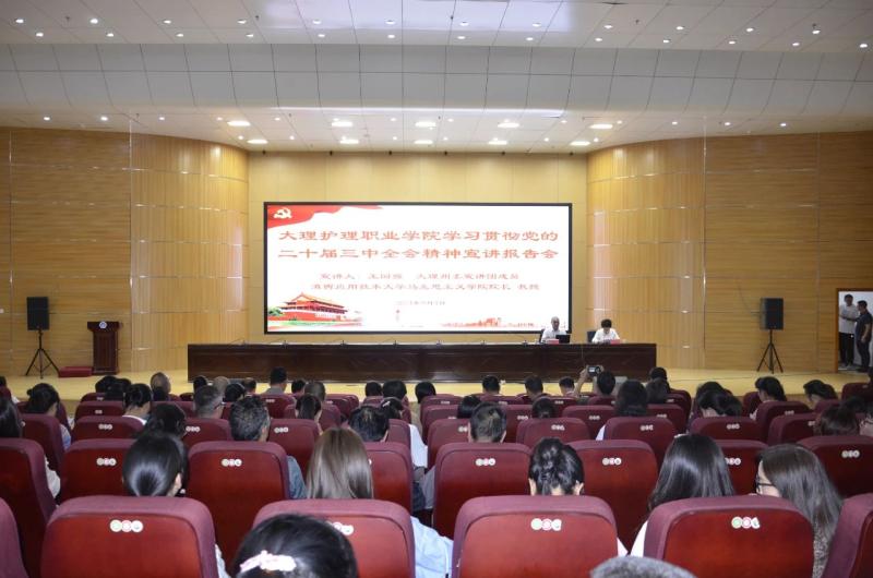 9月4日,新葡萄奔驰AMG官网召开学习宣传贯彻党的二十届三中全会精神宣讲报告会。大理州委宣讲团成员、滇西应用技术大学马克思主义学院院长王国强教授作专题宣讲。学校全体教职工及学生代表在主会场参加会议,二年级学生在教室通过多媒体线上同步聆听宣讲报告会。会议由学校党委书记廖惠群同志主持。