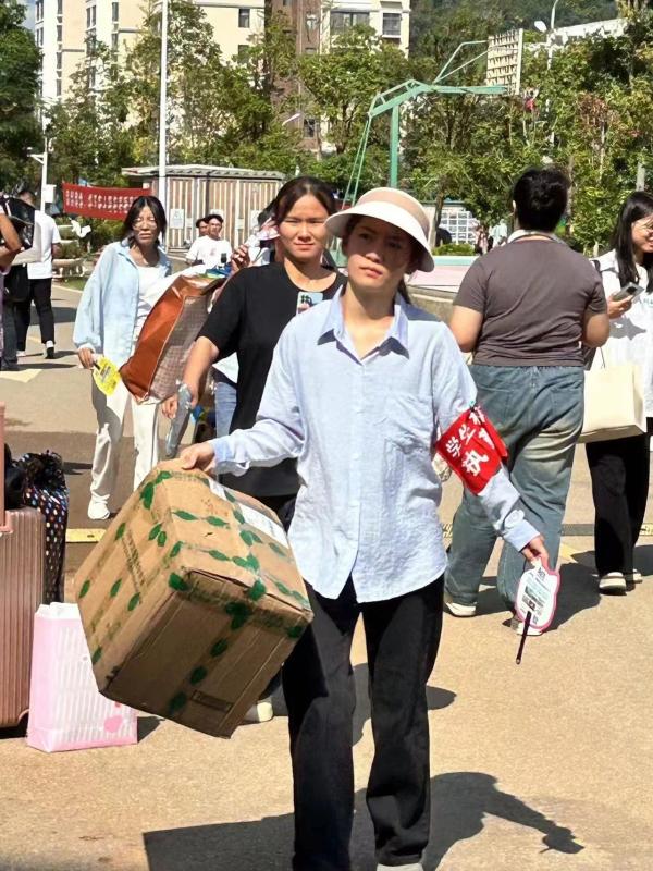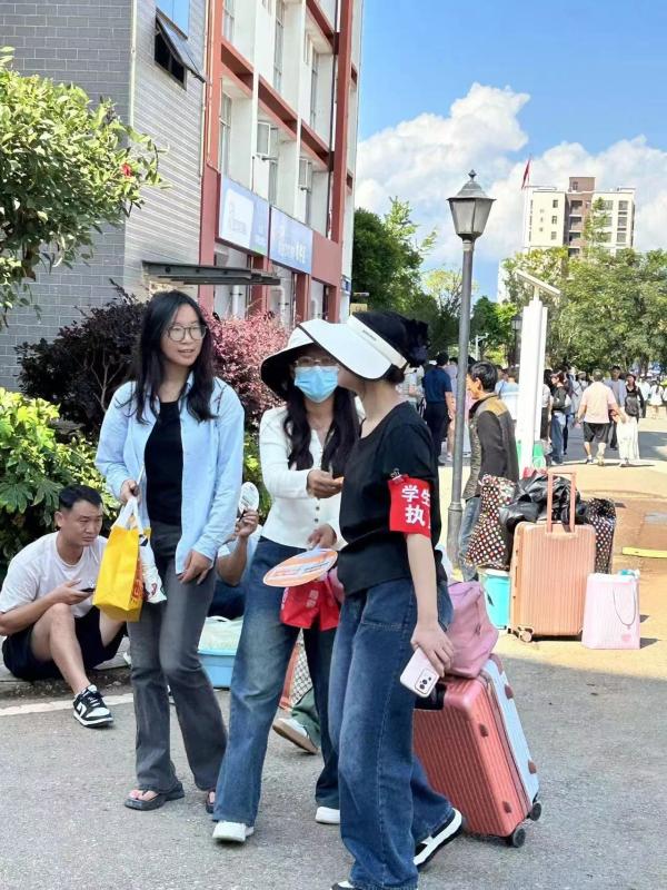 早上8:00整,学校迎新志愿者便早早的来到了迎新现场,看到入校新生便立刻迎上去,微笑着说:“你好,新同学!”一声声亲切的问候,打破了初识的尴尬,他们在各自的岗位上尽职尽责,或引导新生报到,或帮忙搬运行李,或为家长解疑答惑,以实际行动彰显了新时代青年学生的责任与担当,他们的身影成为校园里最亮丽的风景线。