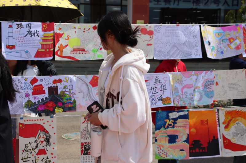 绘画展览区内,一幅幅色彩斑斓、主题鲜明的画作吸引了师生们驻足观赏。作品围绕“凝聚奋进力量,强国复兴有我”的核心主题,或展现祖国大好河山的壮丽景色,或表达青年学子对未来美好生活的憧憬与追求。每一笔、每一划都饱含着创作者对祖国的热爱与对新时代的感悟,生动诠释了当代青年勇于担当、不懈奋斗的精神风貌。