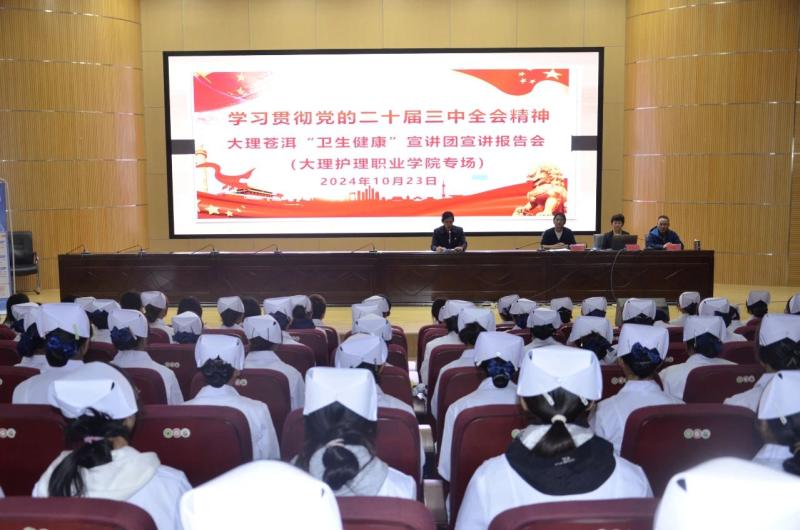 10月23日,大理州卫健委大理苍洱“卫生健康”宣讲团来新葡萄开展健康宣教进校园活动,进一步学习宣传贯彻落实党的二十届三中全会精神,为广大师生开展艾滋病防治和心理健康教育科普宣讲。此次活动由学校教务科、学生科、护理系党支部承办。活动由大理州卫生健康委党建办二级主任科员尹定松主持,共计250余名师生参与活动。