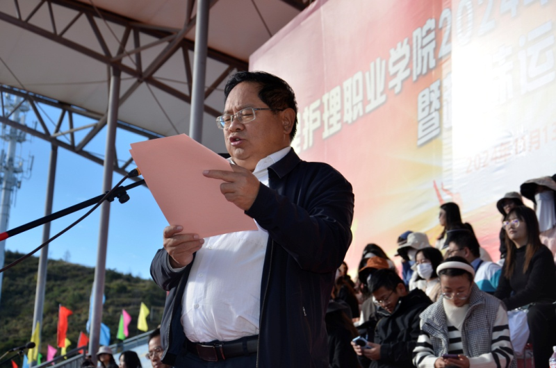 学校党委副书记、院长蔡德周作题为《奋斗无止境 拼搏向未来》的讲话,希望全校师生在此次运动会中体现出拼搏、团结的精神,尊重对手、尊重裁判、尊重规则,发扬运动精神,展示青春风采,为梦想而奋斗。
