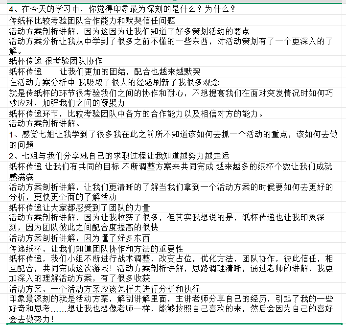 通过培训,学生们纷纷表示受益匪浅,不仅学到了如何更好地进行团队合作,还掌握了活动策划和过程控制的关键技巧;同时也激发了他们自我成长的动力,增强了作为学生骨干的责任感和使命感。培训虽落幕,但所学所悟将如灯塔般指引前行,助力参训的同学们在未来的学习生活工作中,以更坚定的步伐,践行责任,绽放青春光彩。