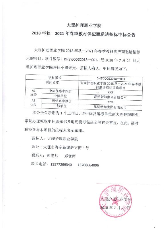 新葡萄奔驰AMG官网2018年秋—2021年春季教材供应商邀请招标采购项目,项目编号:DHZYJCCG2018—001,经2018年7月24 日新葡萄奔驰AMG官网评标小组评定,招标人确认,中标情况如下: