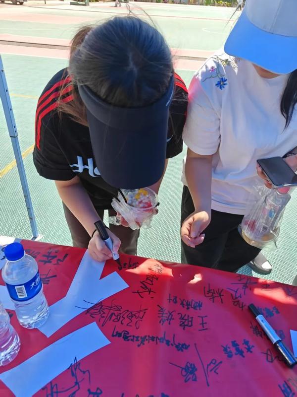 学校倡议全体师生积极参与禁毒防艾行动,从自身做起,珍爱生命,远离毒品,预防艾滋病。师生们积极响应,纷纷在禁毒防艾宣传宣传横幅上签名,表达了共同守护校园健康安全的决心。