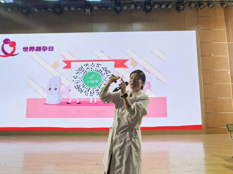 本次讲座按照《科学避孕主题活动指南》进行,内容涵盖了性教育、避孕知识、生殖健康等多个方面。讲座现场布置了多幅海报,发放了宣传单,为同学们提供了丰富的学习资料。在避孕知识普及环节,袁老师详细介绍了各种避孕方法,包括避孕套、避孕药等,并强调了避孕套在预防性传播疾病方面的作用。袁老师还现场演示了安全套的正确使用方法,加深了学生对避孕知识的理解。同学们还通过“勇敢一问”小程序参与了避孕知情选择、常用避孕方法百科以及趣味测试、匿名问答等互动游戏。