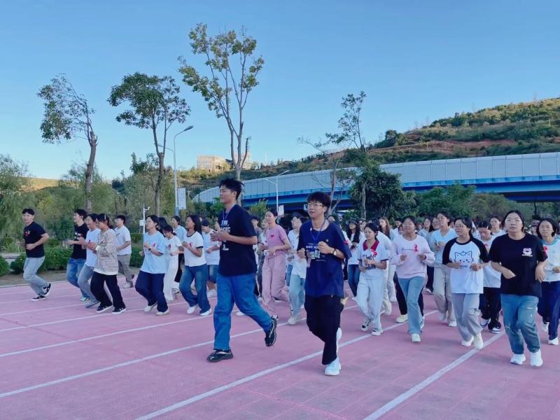 活动首先进行了青春健康知识讲解。专业老师通过生动讲解,普及了疾病预防、生殖健康等内容,提升了师生的健康意识和自我保护能力。在乐跑活动中。师生们佩戴着象征健康与希望的红丝带,迈开矫健的步伐,在足球场上奔跑。红丝带在阳光下随风飘扬,象征着青春的活力与对健康的追求。师生们相互鼓励、相互支持,充分展现了新葡萄师生积极向上、团结协作的精神风貌。