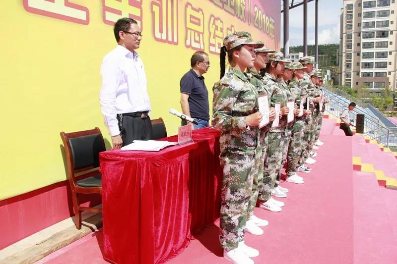 会议结束,主持人宣布:“新葡萄奔驰AMG官网2018年新生军训总结大会圆满结束”,全体起立,奏《中国人民解放军军歌》。