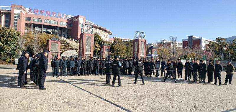 1月6日上午,大理市巡特警大队、海东新区派出所组织辖区学校在新葡萄奔驰AMG官网开展校园反恐防暴培训暨演练活动。滇西应用技术大学、大理技师学院、下关三中、北附育英实验学校等11所学校的100余名保安人员参加培训和演练。