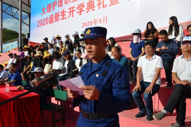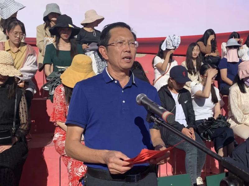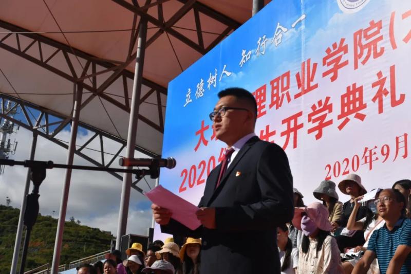 院党委副书记、院长蔡德周作开学典礼暨军训动员讲话。他代表学院全体教职员工对2020级1700名新同学的如期而至表示热烈欢迎!对承担此次军训工作的部队官兵表示衷心的感谢!并介绍了学院的发展历程等相关情况,同时对全体新生提出三点希望:一是梦想源于思而成于干。在求知的道路上博学之、审问之、善辩之、笃行之,努力使自己成长为一名善于思考和有精神追求的学生,让自己的青春梦想在中国特色社会主义伟大事业的建设中焕发出绚丽光彩;二是责任聚于心而成于行。要以立德成才为己任,用包容、友善、正直践行我们“立德树人、知行合一”的院训,要以求知为己任,为自己的头脑带来一次知识风暴的洗礼。要以诚信为己任,共筑诚实、互助、友爱的和谐家园;三是勤奋贵于行而成于恒。“纸上得来终觉浅,绝知此事要躬行”,同学们既要努力学习科学文化知识,也要积极投身社会实践,积极发挥00后大中专学生思想活跃、思维敏捷的优势,勇于创新、善于创新,正确评价自我,增强信心,把自己创新的思维付诸实践,收获成功。