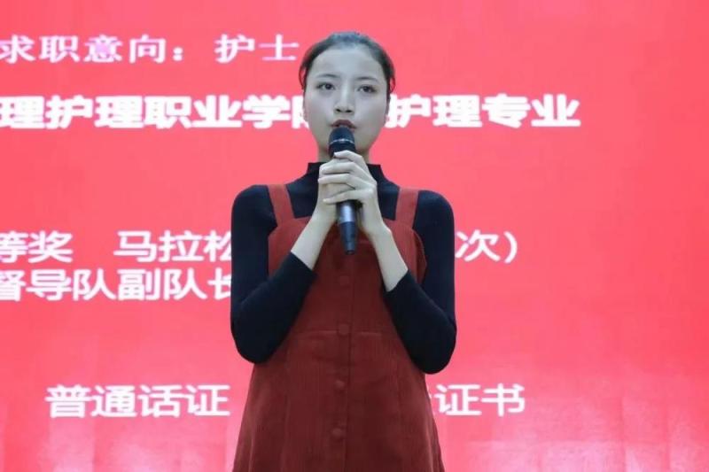 决赛环节由自我介绍、现场抽题和压力问答三个部分组成, 院党委组织部李洁老师等五位评委及在校班级学生人气评委共同组成大赛评委组。大赛过程紧张激烈,气氛热烈。参赛选手根据比赛环节,结合自身经历,针对自己的职业兴趣等方面进行求职陈述。评委们专业犀利的提问和现场选手机智冷静的表现,让大赛现场掌声不断。
