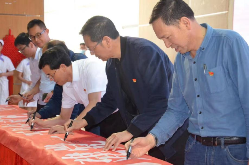 演讲结束,在启动仪式上进行“重温百年党史 书香浸润初心”读书签名活动,现场人气攒动,气氛热烈。学院党政领导带领师生在印有“世界读书日”的横幅上庄重地签上了自己的名字,每一个签名都饱含着师生对读书的热爱,对阅读的尊重。
