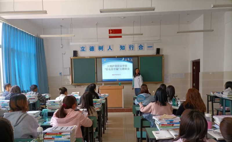 活动主要由两部分组成,一是以班级为单位召开“预防电信网络诈骗”主题教育班会。会上,同学们从什么是电信网络诈骗、电信网络诈骗的形式、如何防范电信网络诈骗等三方面进行详细学习;全体同学通过扫码参与防范电信诈骗问卷调查;就如何防范电信网络诈骗做交流发言;最后,所有同学共同签订《防范电信网络诈骗承诺书》。二是学院与大理市公安局海东巡逻中队联合开展“预防电信网络诈骗”教育大会。教育大会邀请大理市公安局海东巡逻中队中队长刘硕,以“防范电信网络诈骗”为题为师生进行详细讲解,刘硕中队长分别从网络诈骗的形势、类型、案例分析、防范措施和补救措施等六个方面向师生作详细介绍,并结合近期发生的网络诈骗的真实案例分析网络诈骗的危害,告诉师生要提高安全防范意识,严防网络诈骗事件的发生。