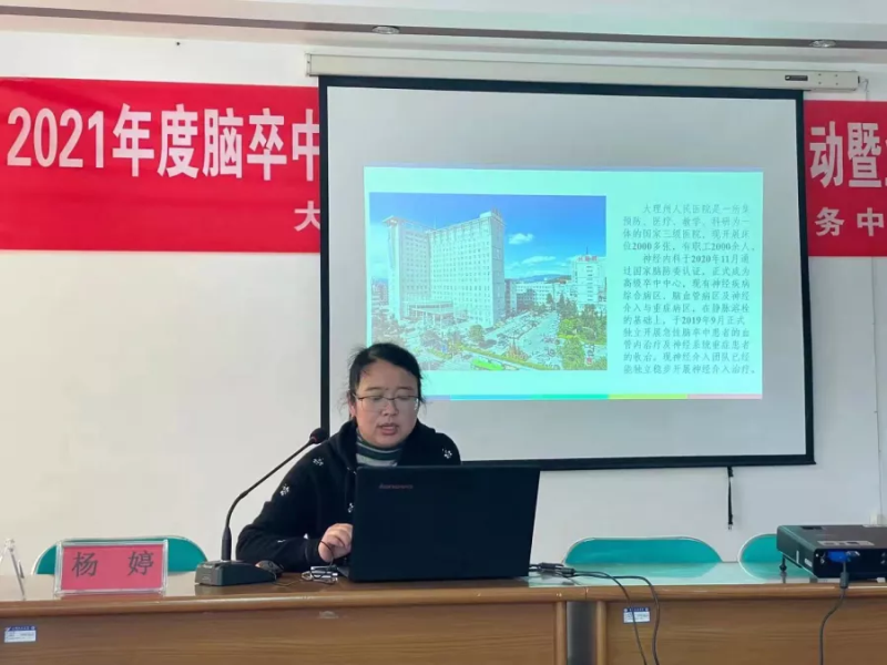 在培训环节,州医院神经内科护士长杨婷、张娅分别带来了《2021年度筛查干预方案解读》、《脑卒中高危人群筛查和干预项目解读》的精彩培训。