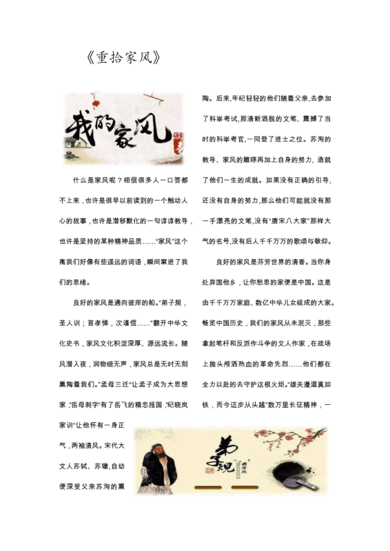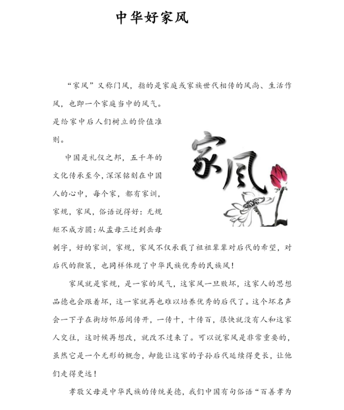 活动由学生科牵头组织,紧紧围绕活动主题,组织开展“中国好家风”四个一活动,即:召开一次主题班会;刊出一期主题板报;开展一次主题手抄报、书画大赛;开展一次主题征文大赛。