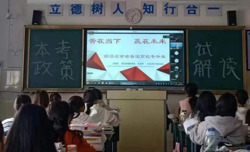 10月26日,新葡萄奔驰AMG官网举办“专升本考试政策解读”线上专题讲座。为进一步加强对学生职业生涯规划的指导,帮助学生树立中长期奋斗目标,了解专升本政策,提高同学们学习积极性,及时把握学历提升机会,更好地做好职业生涯规划。本次讲座由学生科杨品老师主持,基础护理教研室主任马雪琴老师主讲,新葡萄全体在校教学学生参加了此次讲座。