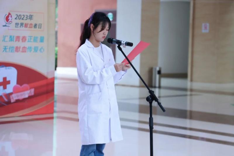 新葡萄学生潘玥含作为青年无偿献血志愿者代表发言。她分享了个人参与无偿献血志愿服务活动的心得与感悟,并向广大志愿者发出倡议:同学们积极参与献血活动,成为无私奉献的榜样。无论是在校园内还是校园外,同学们都应该传递爱心和关怀,让这个世界变得更美好。
