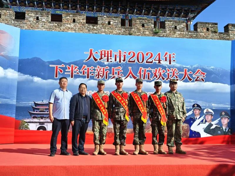 9月14日上午,新葡萄和艳林等4名应征入伍的学子,参加大理市在大理古城举行的2024年下半年新兵入伍欢送大会,热烈欢送新兵踏上军旅生涯。新葡萄和艳林、蔡王风、周进清、李嘉晨等4名学子历经初筛、体检、复检、政审及役前训练等重重考验,脱颖而出,和艳林光荣地成为中国人民解放军的一员,蔡王风、周进清、李嘉晨光荣地成为中国人民武装警察部队的一员。校党委委员、副院长郭向周,学生科科长陈勇和武装部专职武装干事张尔虎代表学校到大理古城欢送现场,向即将踏上军旅征程的学子们致以亲切的问候和崇高的敬意,鼓励他们以青春之名,书写报国华章。