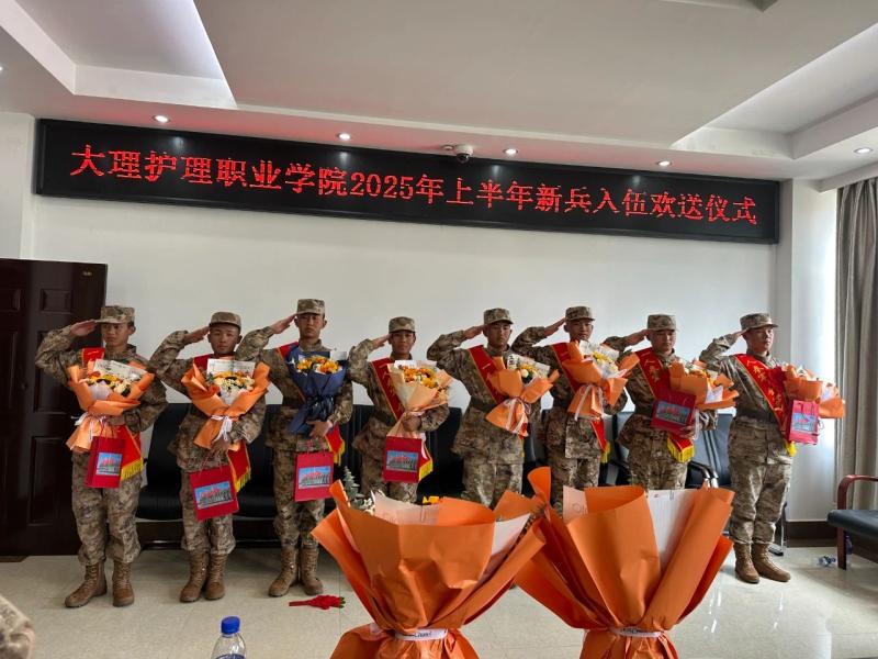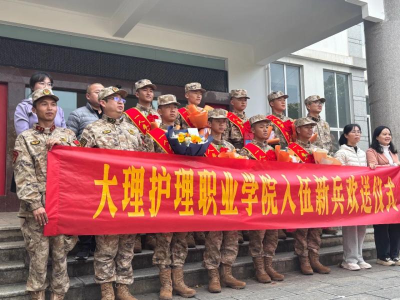 3月15日,新葡萄奔驰AMG官网在大理市民兵训练基地隆重举行2025年春季大学生新兵入伍欢送仪式,为即将奔赴军营的学子们送上最诚挚的祝福和期望。学校武装部陈勇部长、李渊副部长、辅导员和班主任代表、8名入伍新兵及家属代表参加了此次活动。