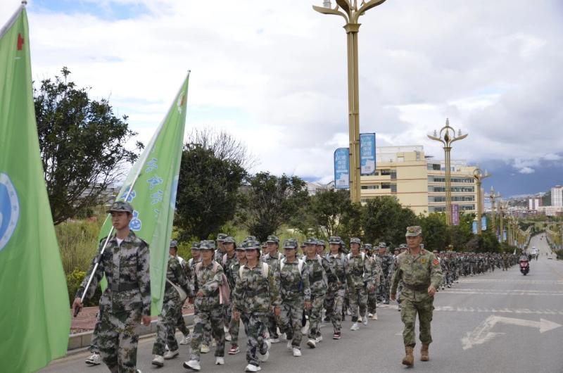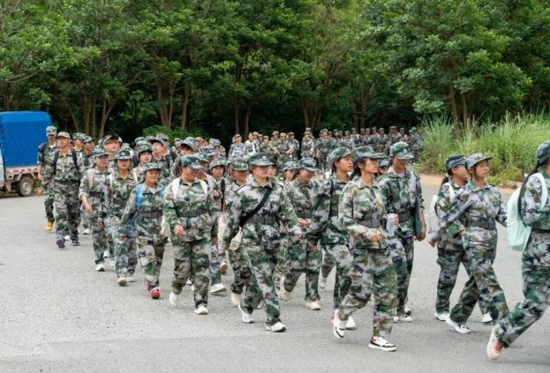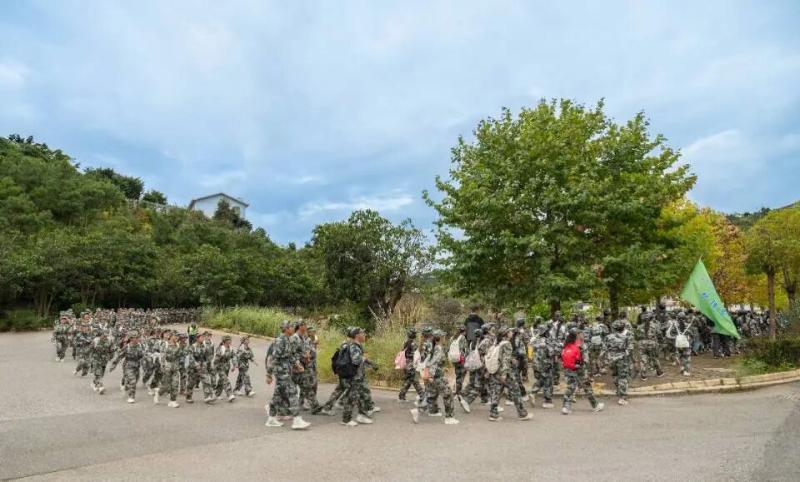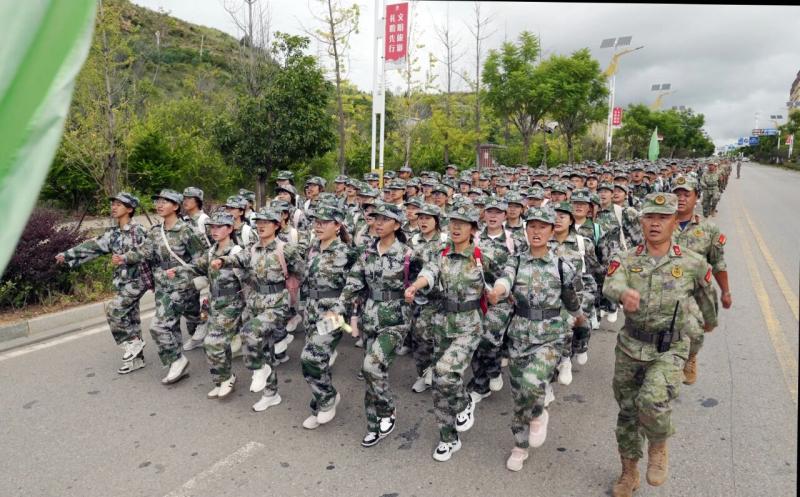 学生们在林荫道与山径的交替中磨砺意志,于体力分配与团队协作的考验中锻造强健体魄,在汗水浸透的迷彩服上培育“强国有我”的爱国奉献精神。