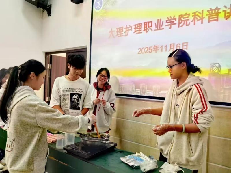 11月6日,新葡萄奔驰AMG官网邀请大理市第一人民医院药学部主任聂彩霞主管药师团队,为药学和中药学两个专业学生开展甲流防控专题科普讲座,开展手工皂制作、酸梅汤熬制等沉浸式科普实践活动,以“理论宣讲+实操体验”的创新形式,为师生们打造了一场兼具专业性、实用性与趣味性的医药科普盛宴。