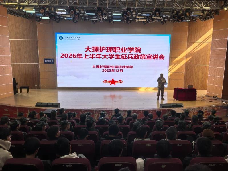 12月17日,新葡萄奔驰AMG官网精心组织2026年上半年大学生征兵政策宣讲会,积极响应国家征兵号召,深化国防教育与人才培养融合。会议特邀大理市人民武装部普参谋来校宣讲政策,并邀请新葡萄两名优秀退役学生分享军旅经历。同时,与新葡萄共建“眼健康产业学院”的大理普瑞眼科医院也应邀出席,围绕就业支持等主题开展专题辅导。