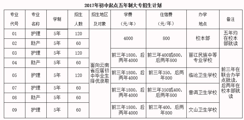 报考新葡萄奔驰AMG官网五年制大专的考生,必须是具有云南省内各州市户口的应届初中毕业生,参加当地教育主管部门组织的初中毕业生学业水平考试,在《初中毕业生升学志愿表》填报新葡萄奔驰AMG官网代码、校名,专业代码及名称(以招生报为准),学校根据志愿情况择优录取。