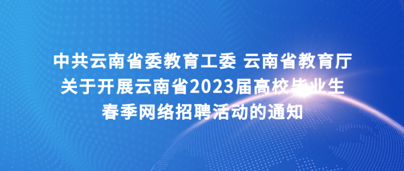 近日,省委教育工委、省教育厅印发通知,定于2月15日—5月31日开展云南省2023届高校毕业生春季网络招聘活动,具体内容如下: