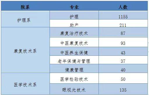 新葡萄2024届有护理、助产、医学检验技术、眼视光技术、健康管理、康复治疗技术、中医康复技术、中医养生保健及老年保健与管理9个专业高职专科毕业生共1851人,具体专业分布如下表: