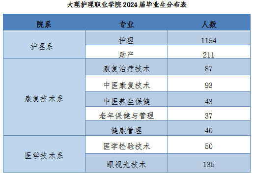新葡萄2024届有护理、助产、医学检验技术、眼视光技术、健康管理、康复治疗技术、中医康复技术、中医养生保健及老年保健与管理9个专业高职专科毕业生共1850人,具体专业分布如下表: