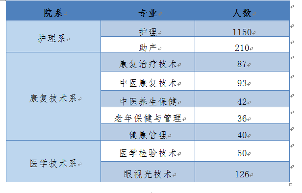 新葡萄2024届有护理、助产、医学检验技术、眼视光技术、健康管理、康复治疗技术、中医康复技术、中医养生保健及老年保健与管理9个专业高职专科毕业生共1834人,具体专业分布如下表: