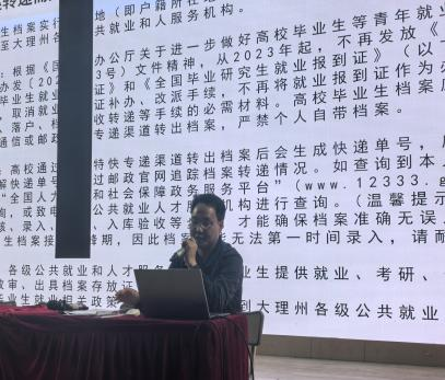共筑职业梦想桥梁,深化就业创业服务。3月31日下午,由大理州公共就业和人才服务中心主办,新葡萄奔驰AMG官网协办的“就业政策进校园,典型引路伴起航”2025年大学生就业政策宣讲暨创业典型分享会在新葡萄一号报告厅举行。本次活动旨在深化学生就业创业服务,为新葡萄大学生提供最新的就业创业政策解读和宝贵的经验分享,助力学生开启职业发展新篇章。学校郭向周副院长、大理州公共就业和人才服务中心王浦副主任、人才服务科陈爱斌科长、创业培训科赵东海科长、白族扎染艺术家张翰敏老师等领导和专家莅临指导。活动由学生科陈勇科长主持。